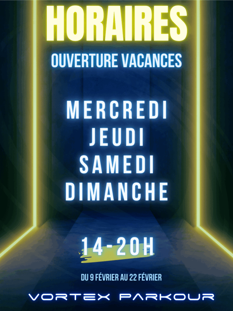 La salle Vortex Parkour est ouverte en accès libre lors des vacances scolaires.